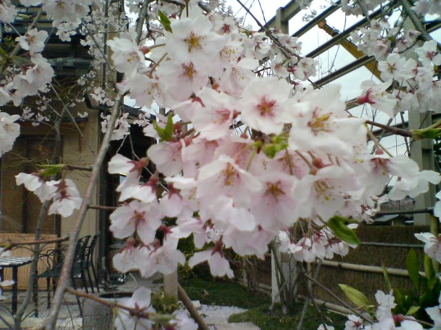 そして嵐山。あいにく天気は曇りっぱなしですが、一人で来るのとはやはり気分が違うものです。ここで昼食。皆でお好み焼きをつついて一息。そのあとは近くの足湯へいってもう一息つくw このかんブルベやロードレーサー、峠(!)の話で盛り上がる。同じ話題を共有できる人達がいるというのは、とても楽しい。暖かくなってきたのでそろそろジャージも衣替えしてスネ毛そらなきゃなんていってる時にGonさんに写真を撮られたので、てっきり私の小汚いスネを撮っているんだと思っていたら、素顔までばっちり写ってましたw 上の写真はそこの庭の桜。とてもきれいに咲いてました。