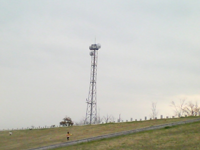 ここで神埼川に合流するルートをちょっと説明します土手の向こうにこの鉄塔が見える付近に土手に上がる道があります。手前に見えてるヤツがそうだと思います。ただし、土手の上はしばらく未舗装なので走るのでしたらご注意ください。