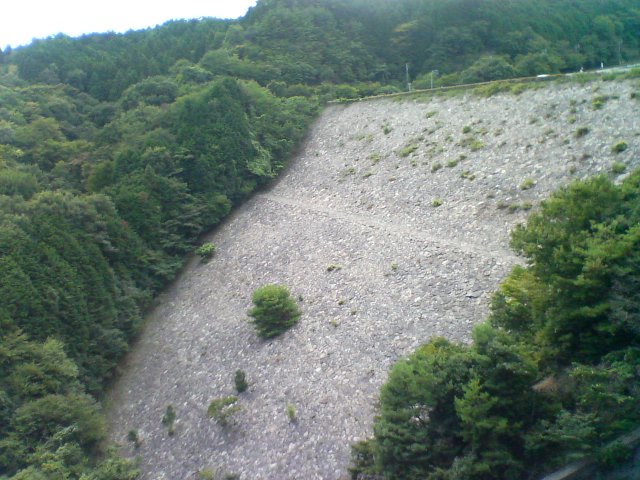 初めてダムの上を通ってダムの裏側の見えるところへ。ダムの裏側はこうなっています。