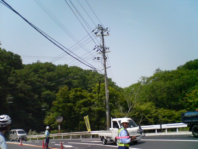 帰る途中、工事区間でしばし足止めをくったときの一枚。やっぱり山の中。