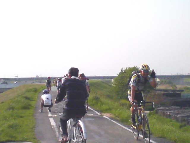 御幸橋を折り返した先で、なにを思ったか、あんのゆうさん、キャノさんとスパート合戦。こりゃ楽しいw