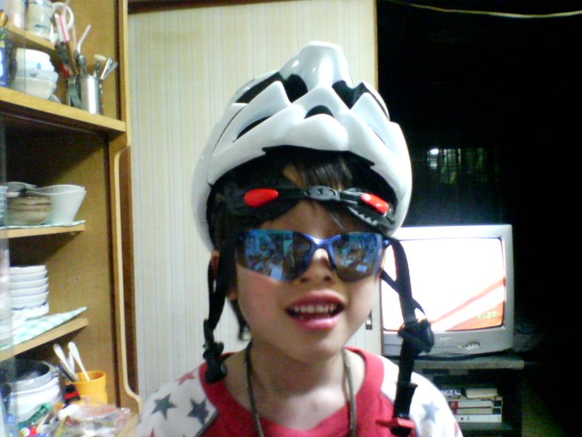 オマケ。ウチの甥っ子がヘルメットとサングラスではしゃいでる図。