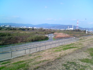 その後、チューブとタイヤを買いに行くかそのまま走りに出るかでちょっと迷ったんですが、結局誘惑に勝てずに走り出すw その日は降ると思い込んでいたので前日は体のケアとかまったくしておらず、軽い筋肉痛を感じつつも妙にペダルが軽い。どうやら結構な追い風が吹いているようで、ギアを軽くしているのもあってケイデンスは100を越えてる。タイヤに穴が開いてるのも忘れて枚方大橋まで一気に走ってしまいました(苦笑)